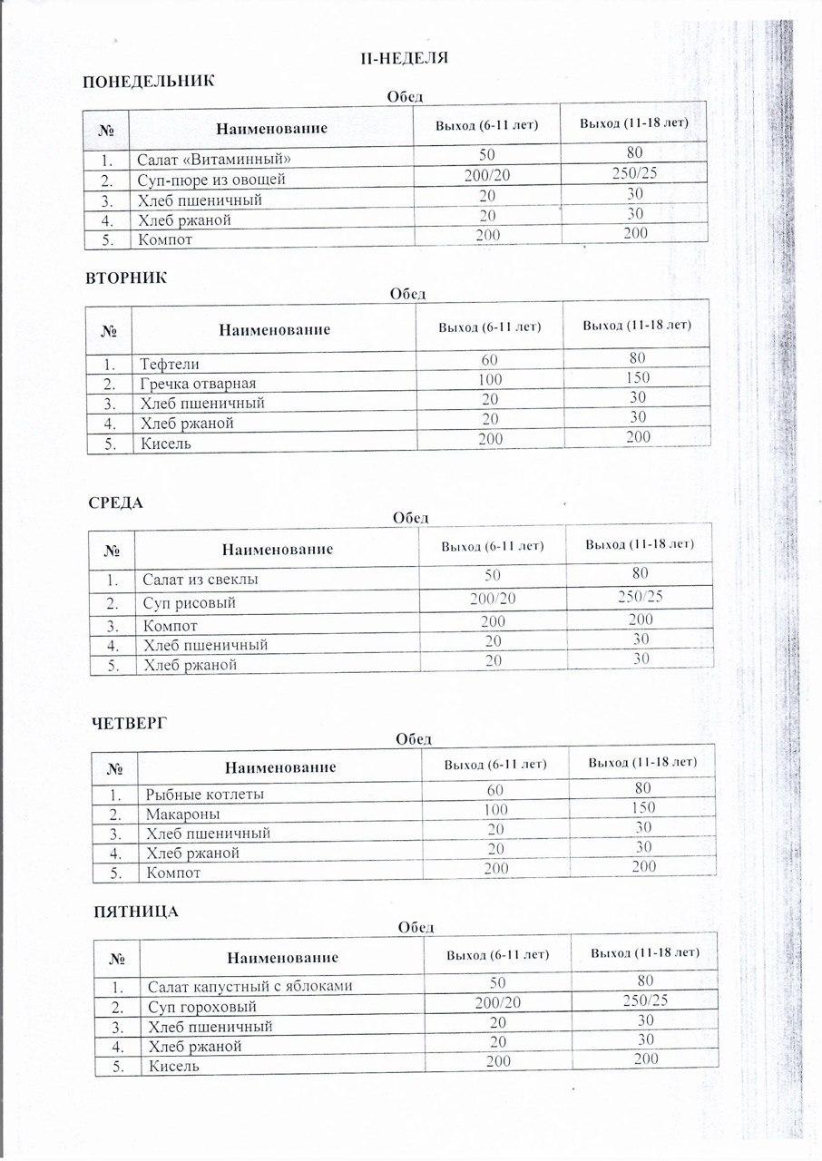 В. Г. Белинский атындағы орта мектеп » Тамақтандыру » Единое двухнедельное меню для организации сирот и детей из малообеспеченных семей в столовых школ ГУ “Карасайский районный отдел образования” 2020-21