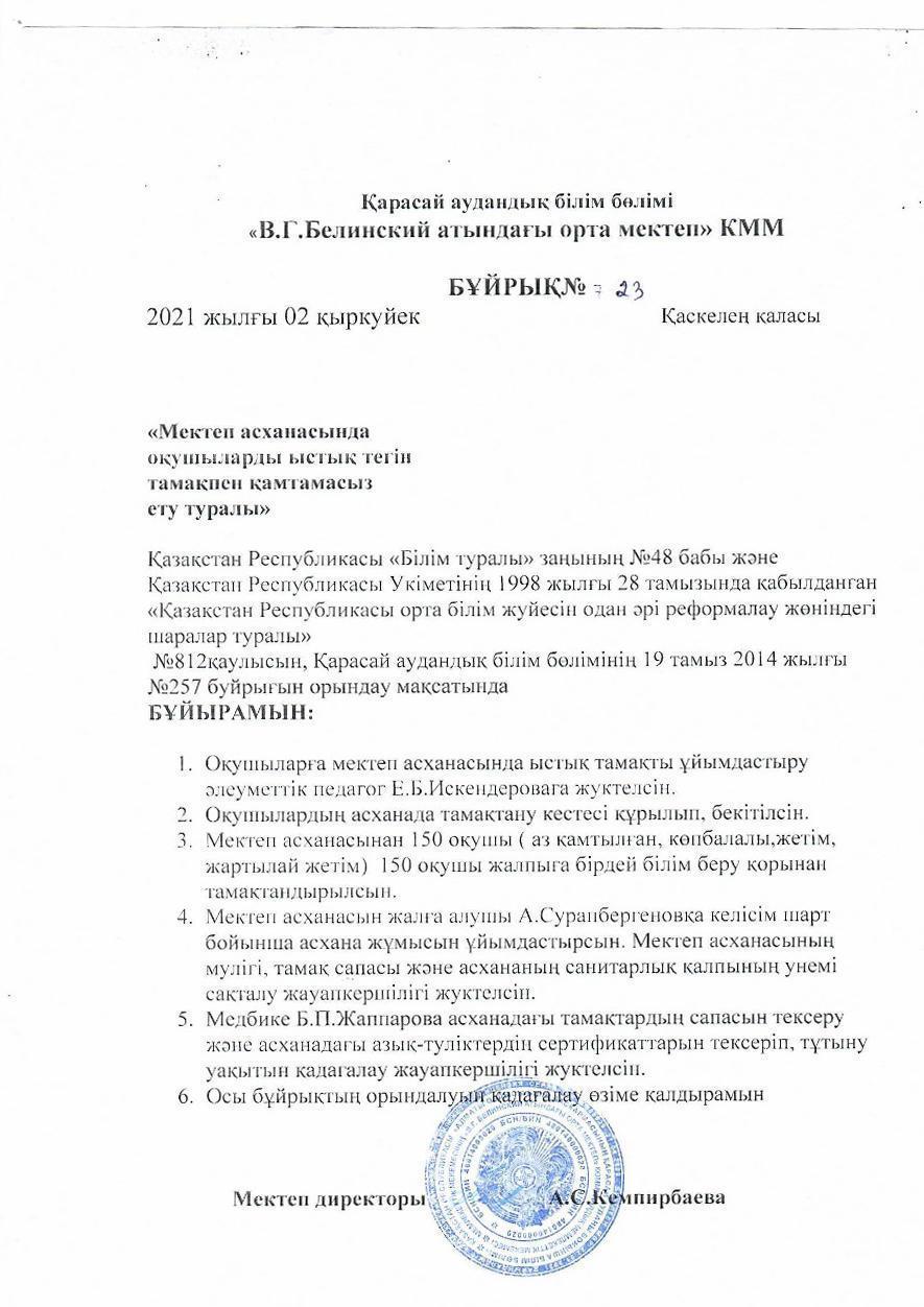 Келісім шарттары 2021-2022 » В. Г. Белинский атындағы орта мектеп